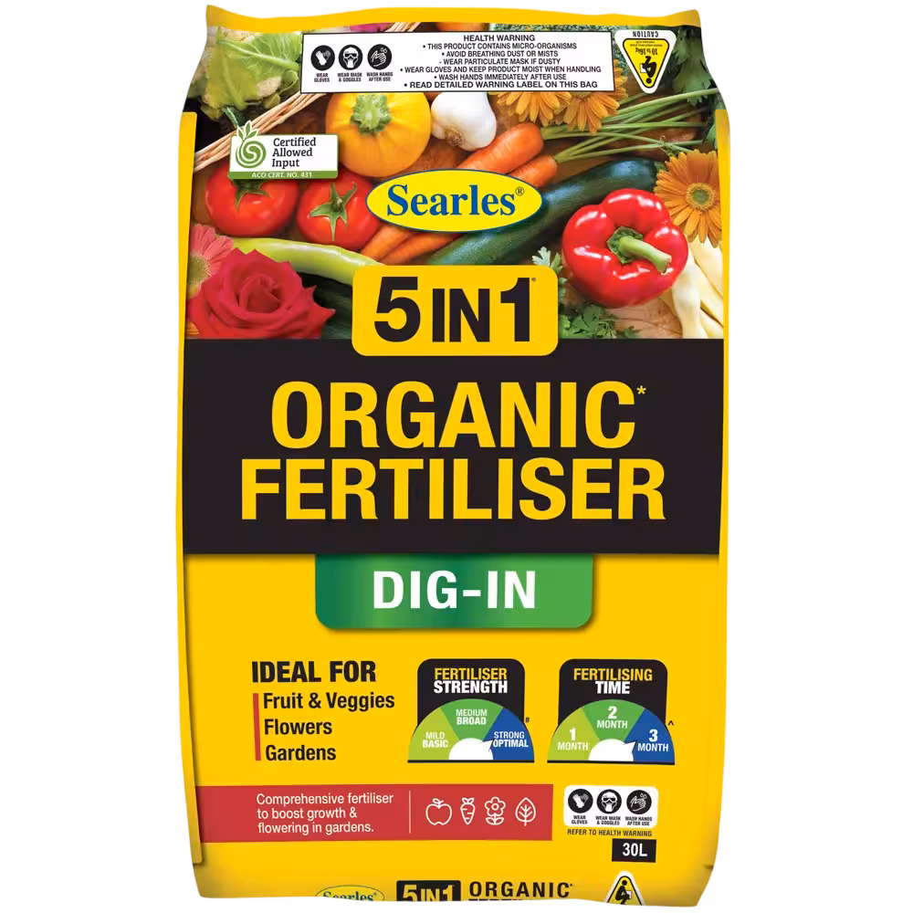 Searles 5 IN 1 delivers supercharged organic goodness, so you can grow the healthiest veggies, flowers, fruit and lawns.