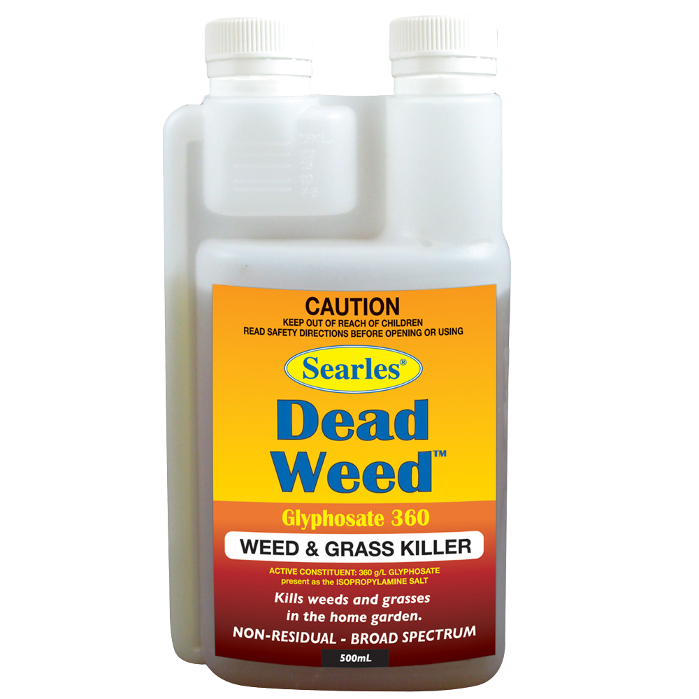 Searles Dead Weed Glyphosate 360 Weed & Grass Killer kills unwanted weeds and grasses anywhere in the home garden. It is non-residual in the soil and so is ideal to treat new garden and lawn areas before planting.