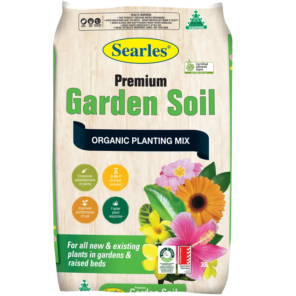 Searles Premium Garden Soil has very good moisture holding capacity, making it very suitable for the Australian climate. It also contains a rich source of essential nutrients, trace elements and provides storage of nutrients for strong plant growth and development.Premium quality for superior results!