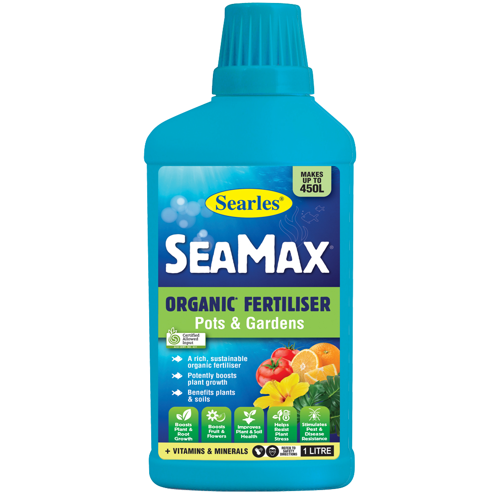 Searles has refined and improved SeaMax Organic Fertiliser liquid formula to make application easier with less odour, while still providing outstanding results for stronger, robust plant growth. A high grade, all natural, fertiliser in easy to use liquid form. Delivers remarkable benefits for the best health & vigour your plants can achieve!